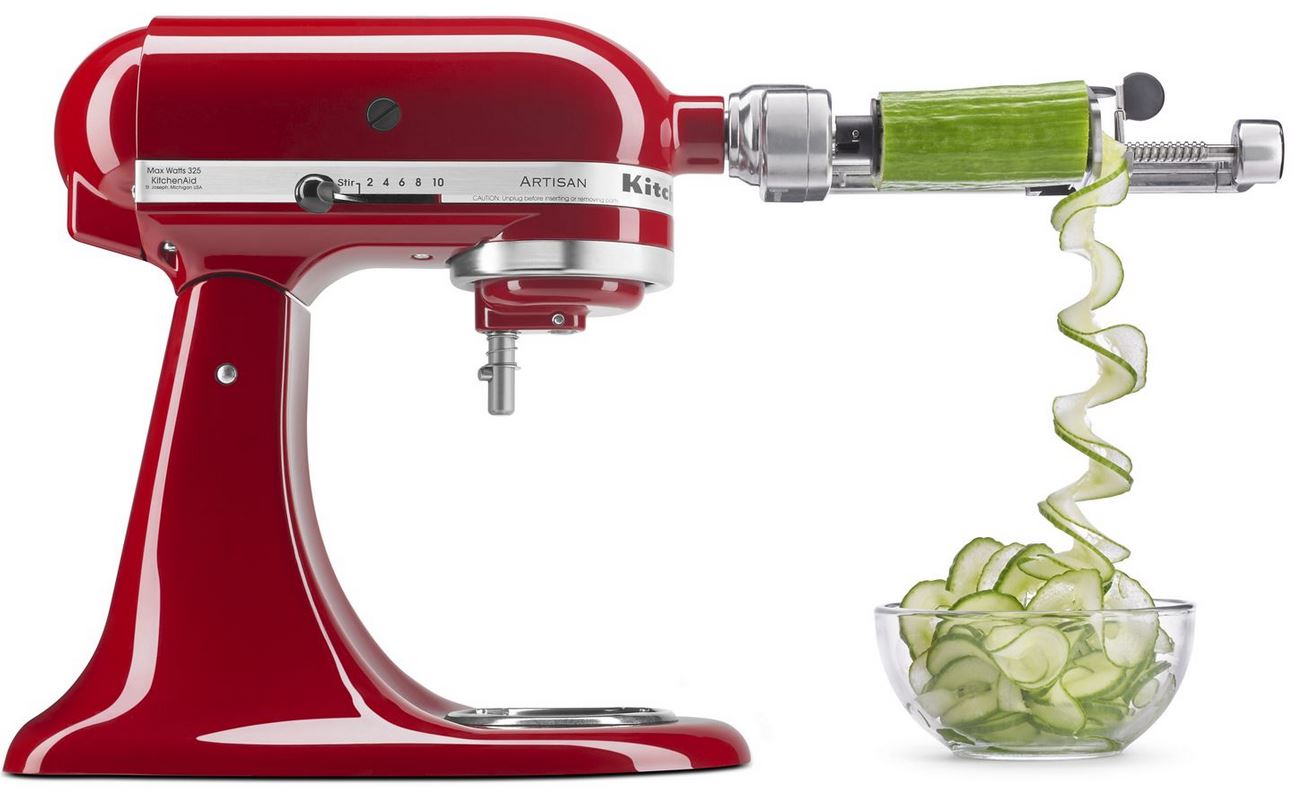 Reinvent classic meals and inspire your culinary creativity with fresh fruits and vegetables. The versatile KitchenAid® Spiralizer Plus with Peel, Core and Slice Stand Mixer Attachment comes with 6 Spiralizing/Slicing Blades and a Peeling Blade, perfect for fresh fruit and vegetable recipes. From zucchini noodles to sweet and savory dishes, the options are endless.Read More