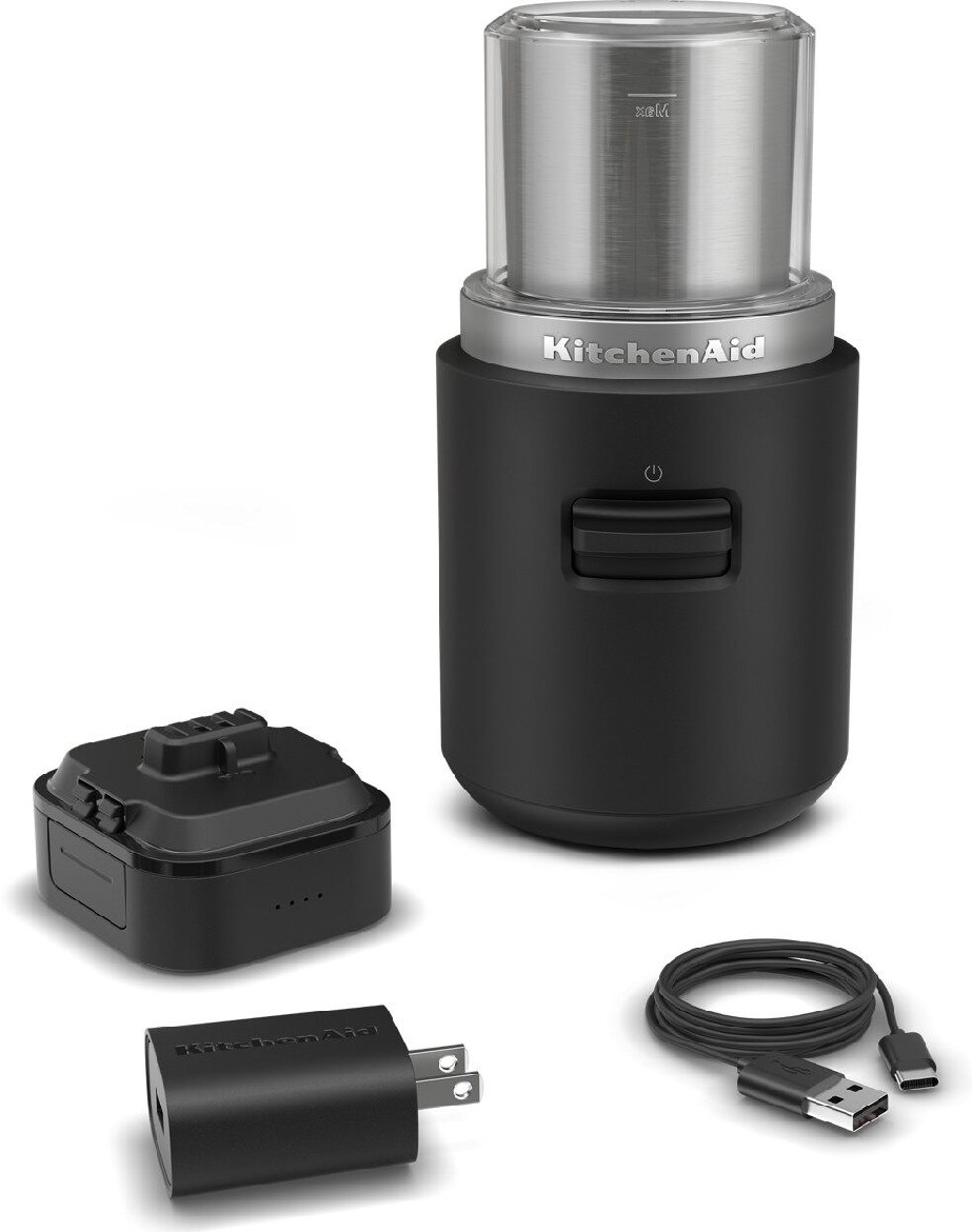 The power to make. The power to move. Create anywhere using the KitchenAid Go™ Cordless Blade Coffee Grinder. Powered by a rechargeable 12V MAX removable battery (sold separately, model KRB12), the new cordless blade coffee grinder delivers 6 minutes of continuous run time* and performance, so you can cook wherever, whatever, and however you choose.Read More