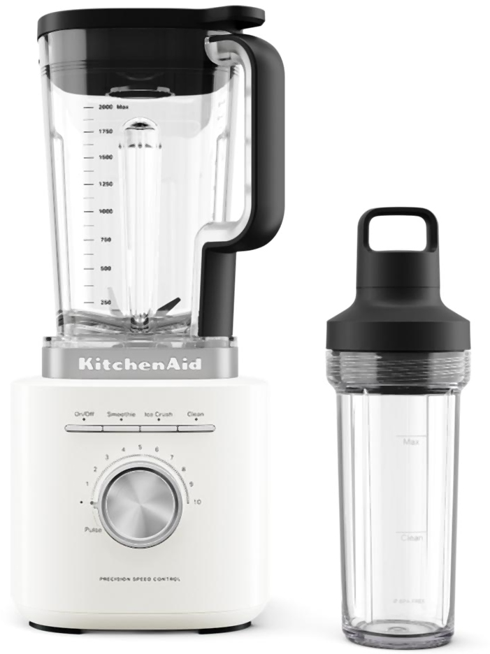 The KitchenAid Pure Power Blender helps craft the blends you want with a precision speed control knob. Use the 10 preset speeds, or simply twist the control knob to smoothly glide between speeds, finding the exact setting for your desired texture. Customize your batch with the 68 oz (2L) plastic jar for making plenty at once, or the Personal Blender Jar for a travel-friendly single serving.Read More