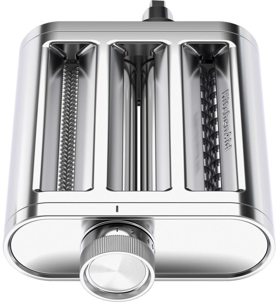 Powered by the KitchenAid Stand Mixer, the 3-in-1 Metal Pasta Attachment helps you easily make fresh homemade pasta from scratch by allowing you to roll and cut it with a single attachment. Create everything from spaghetti to fettuccine or lasagna sheets. Choose between 8 thickness settings to customize your pasta just the way you like it.Read More